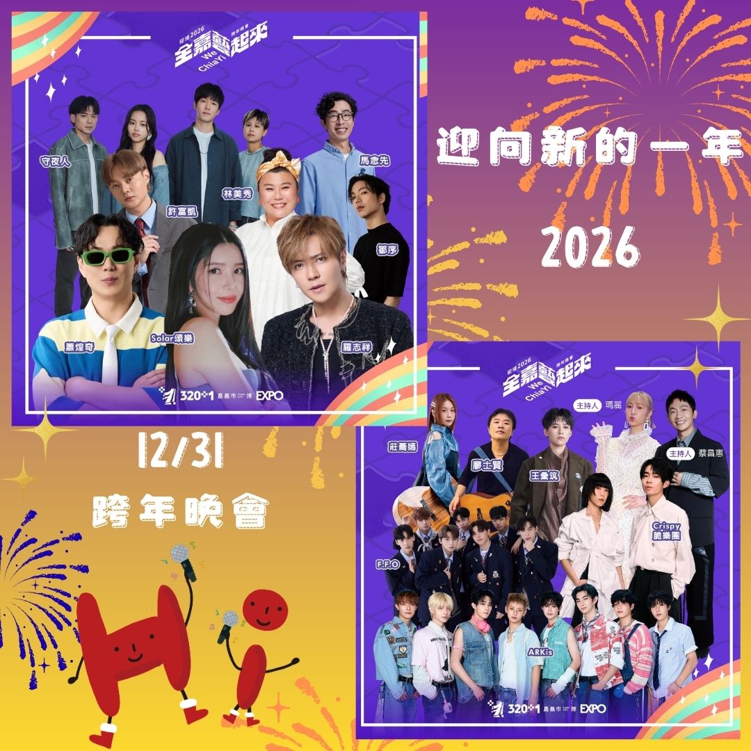⭐ 一起跨年吧,嘉義的夜不睡 ⭐ 音樂在城市流動,人群在城市相遇, 這晚,把時間留給歡呼與期待。